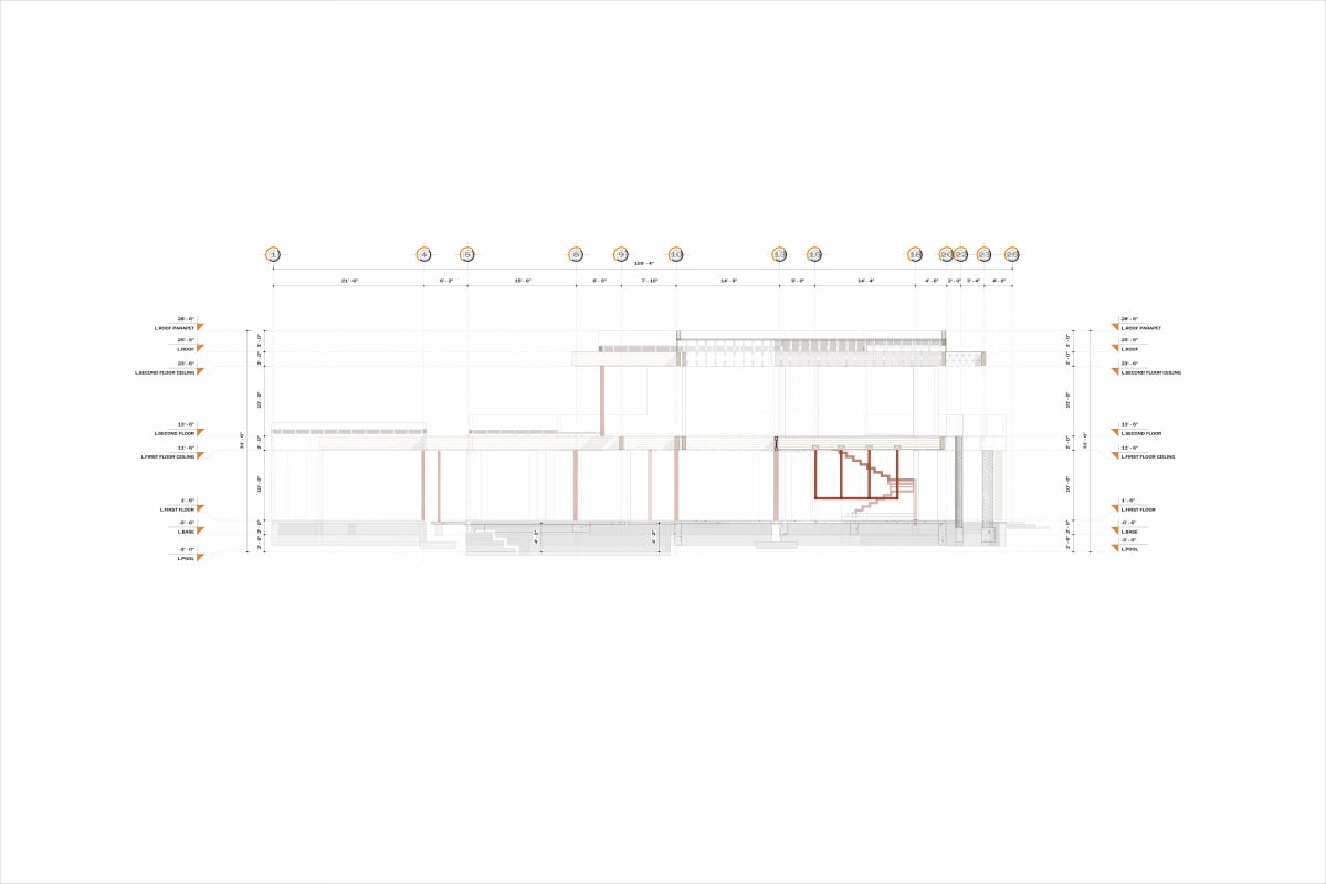 The foundation—a reinforced slab with grade beams—has been designed in compliance with IRC and IBC regulations, ensuring stability and structural efficiency. By applying NDS and ASCE at each analysis and design stage, this project reflects our commitment to integrating international standards, adapting to local specifications, and creating a unique, structurally optimal home.